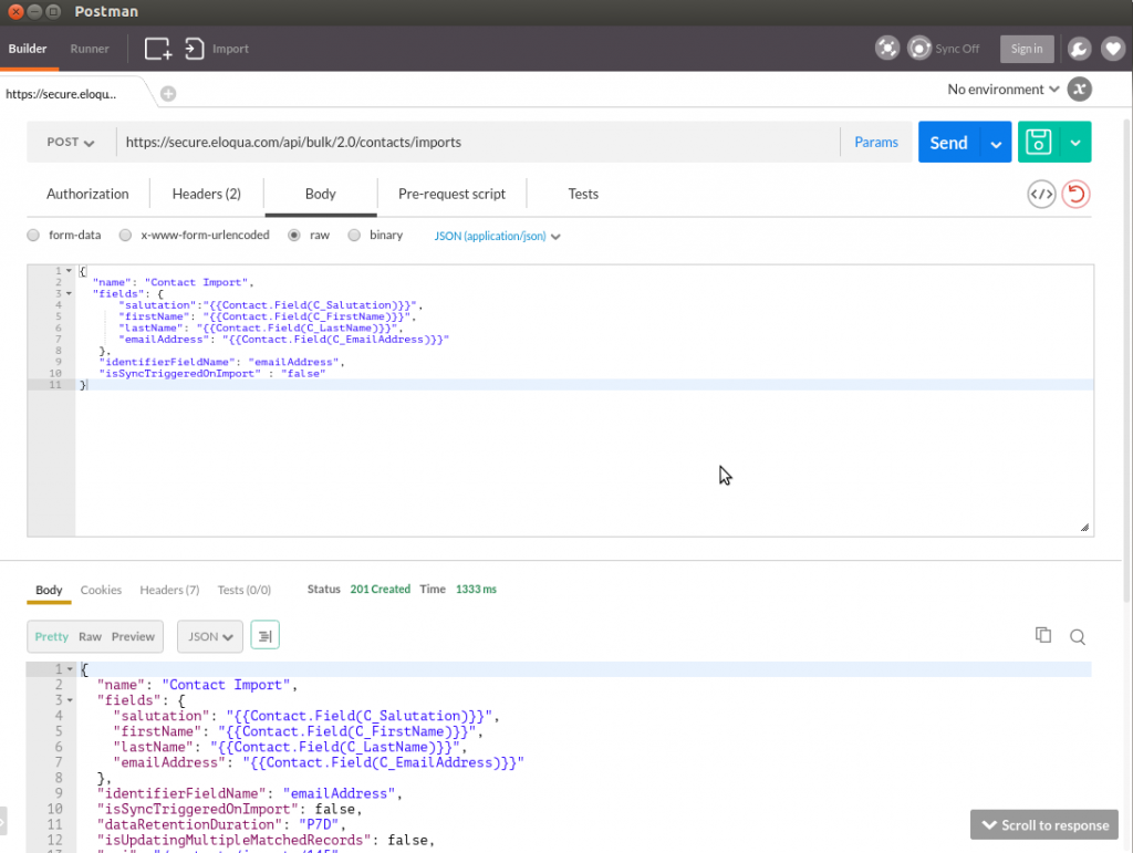 Eloqua Bulk API and Postman
